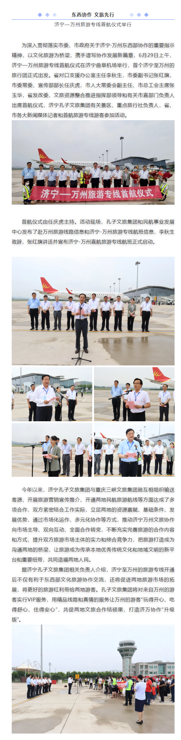 東西協(xié)作 文旅先行 | 濟(jì)寧—萬州旅游專線首航儀式舉行
