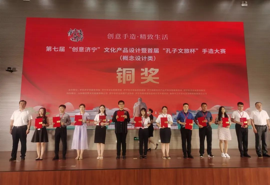 8月13日上午,由中共濟(jì)寧市委宣傳部與濟(jì)寧孔子文化旅游集團(tuán)等單位聯(lián)合主辦的第七屆“創(chuàng)意濟(jì)寧”文化產(chǎn)品設(shè)計(jì)暨首屆“孔子文旅杯”手造大賽頒獎(jiǎng)典禮在濟(jì)寧高新區(qū)創(chuàng)新谷隆重舉行。