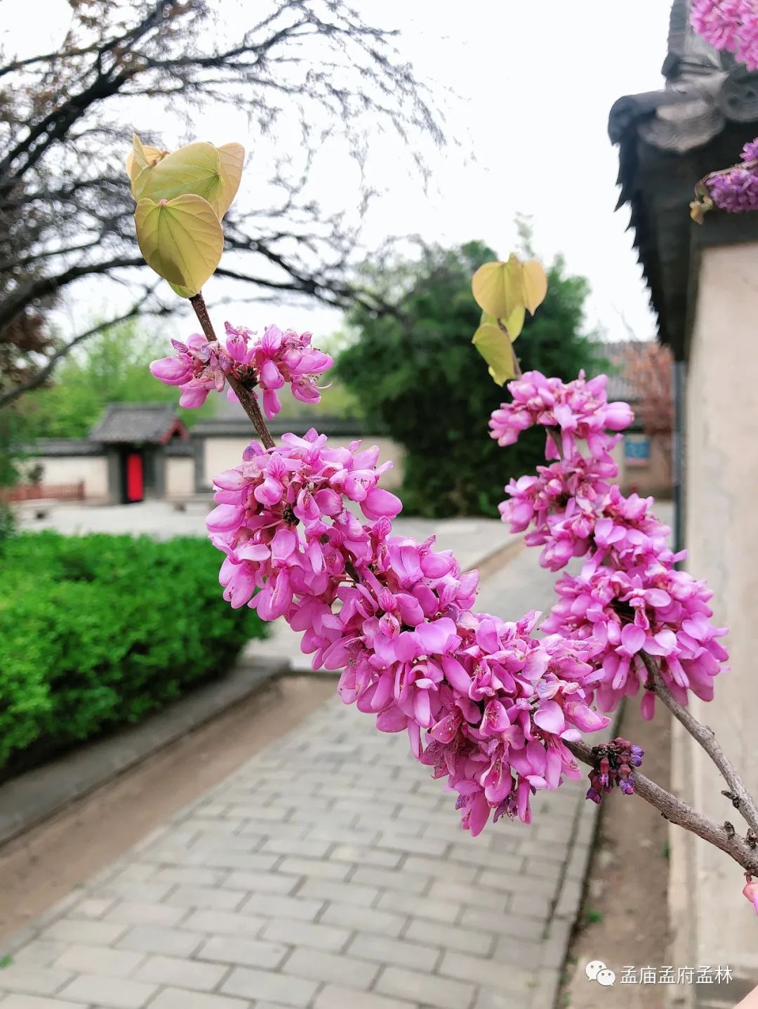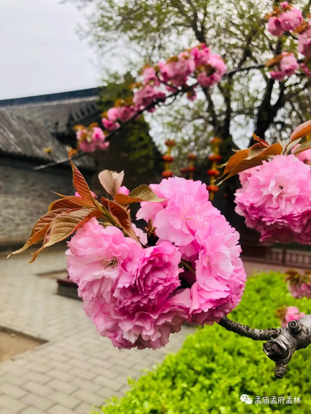 而今,正值春游時(shí)節(jié),孟廟孟府百花齊放,萬紫千紅,宛如一個(gè)大花園,紫丁香、海棠、紫荊、牡丹、櫻花等花姿嬌艷,隨處可見,古老的宅院,花多點(diǎn)點(diǎn),妙不可言。