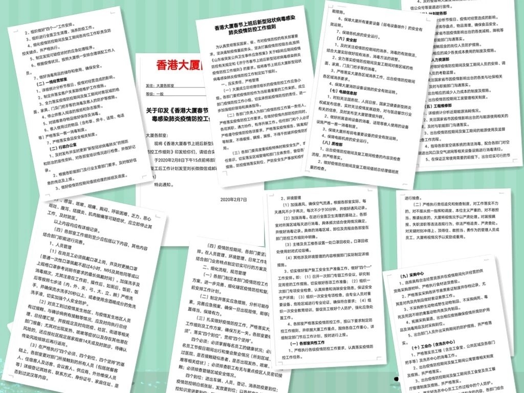 一是壓實領導責任,明確防控措施。根據集團公司安排部署,香港大廈在1月23日疫情發(fā)生后立即召開春節(jié)期間疫情應急會議,安排部署疫情防控各項工作,成立了以總經理為組長的疫情防控工作領導小組,堅持每日工作調度,在全店范圍內全面落實防控工作措施。同時由各部門上交應急預案和部門員工“八個必須”三項登記統(tǒng)計表,每日安排責任心較強的帶班人員輪流值班,應對處理疫情防控。